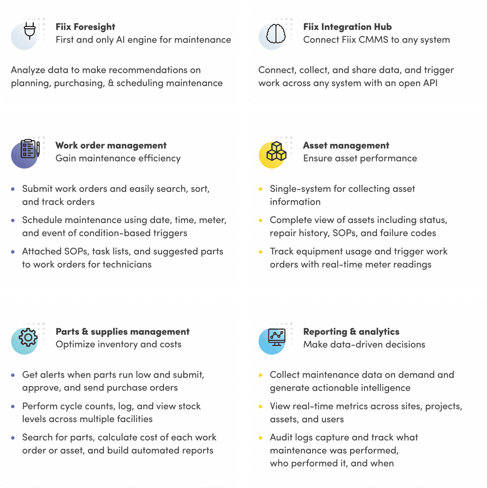 The Fiix platform allows customers to: